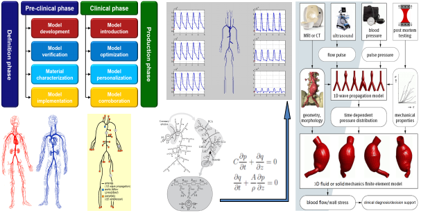 心脑血管疾病严重危害人类健康,并且它是导致死亡的主要原因之一。因此,心脑血管疾病患者的无创诊断和风险估计是必不可少的。血流动力学可模拟心脑血管系统的功能状态,基于超声和脉搏测量装置采集得到的外周血管压力、流量和心血管影像等多模态医学数据,将零维模型、一维模型和三维模型结合起来对心脑血管系统进行多尺度生物力学建模,从而对心脑血管功能进行更精准地分析,并将其应用在在临床诊断、干预治疗、人工血管、体外辅助装置和医疗设备等方面。