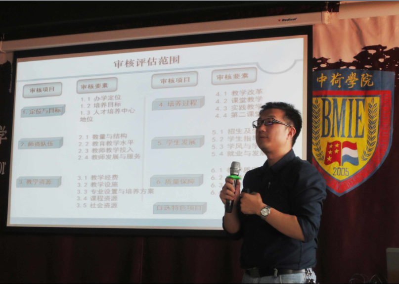 主管学院本科教学工作的副院长齐林详细解读了此次教学审核评估的具体含义、流程、重要性和学校的工作部署,并结合学校最新文件精神为全体教师详细介绍了评估工作的主要环节及专家进校考察的方式和具体的考核内容,使全体教师对评估有了全面的认识和了解。分别解读生物医学工程专业评估项目、要素、要点的内涵,列出撰写要点和提纲,列出支撑材料;安排自评报告撰写和支撑材料的任务分解与确认以及讨论组织保障工作。