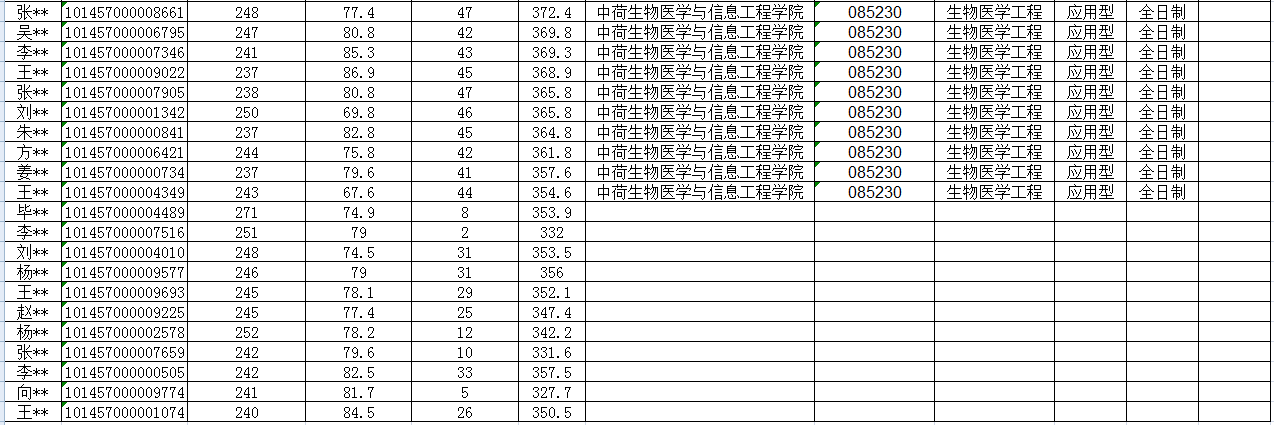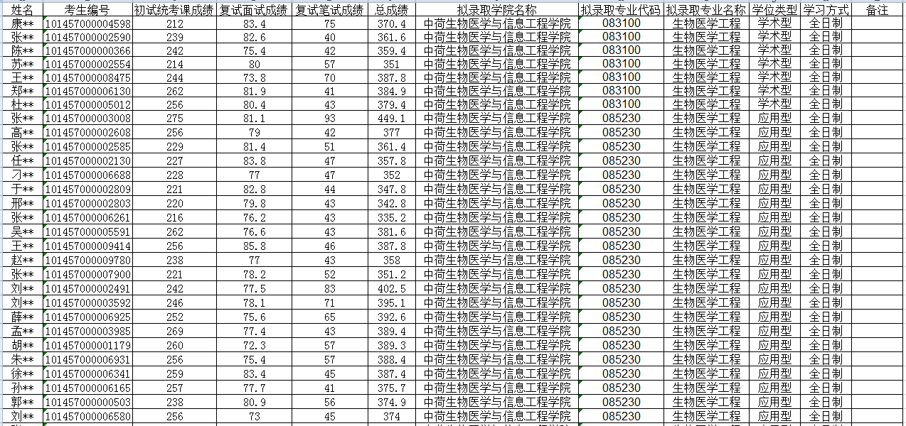 2017年中荷生物医学与信息工程学院硕士研究生调剂成绩及录取结果