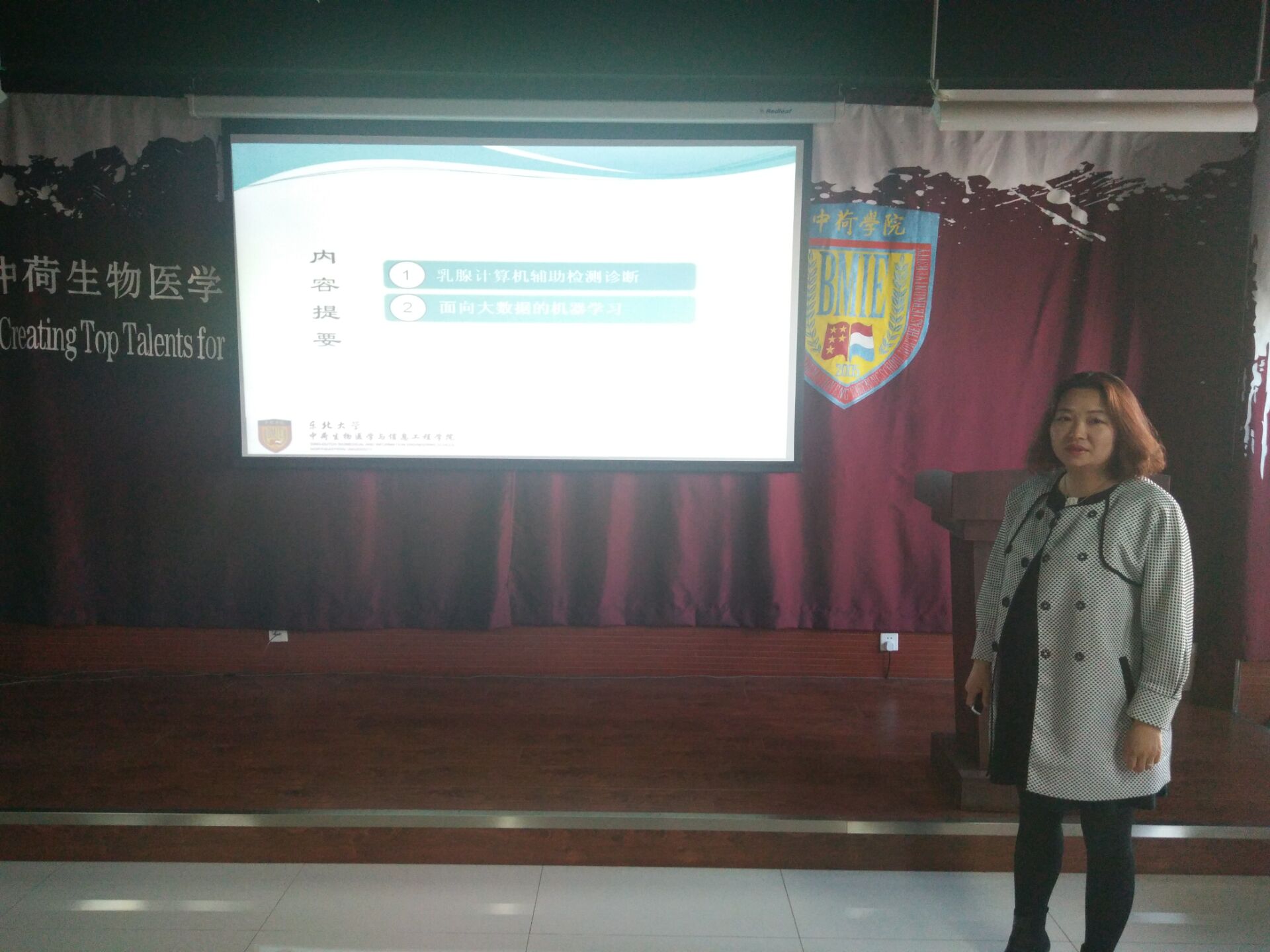 王之琼老师展开了以《乳腺影像大数据分析技术报告简介》为题的报告。报告中,王之琼老师就极限向量机等机器学习的方法在乳腺影像大数据分析中的应用讲述了自己所进行的研究,表达了ELM在医学影像数据具有强大的优势。同时,王志琼老师对医学影像领域中,大数据的重要性阐明了自己的观点,介绍了自己在云计算环境下进行乳腺影像大数据分析的经验。