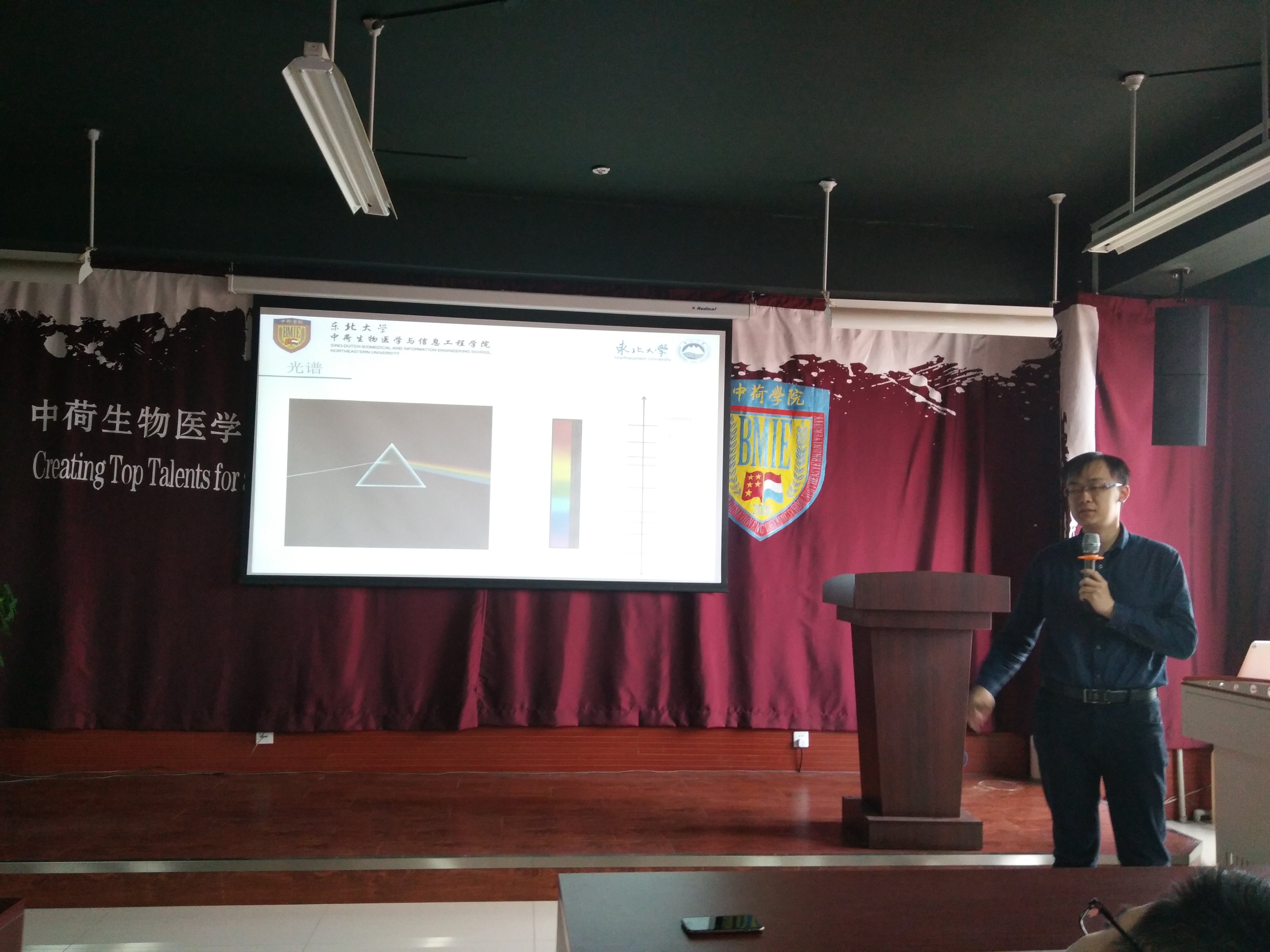 陈硕老师则开展了生物医学光子学相关的学术报告。报告中,陈硕老师讲述了自己在这个新兴交叉学科中的科研经历。介绍了光谱成像学在生物医学领域的相关应用以及自己参与研发的生物医学光谱成像的课题,其中包括对于皮瓣血循环障碍的早期诊断、化学药品成分分析以及白血病细胞拉曼光谱图像的快速测量等。