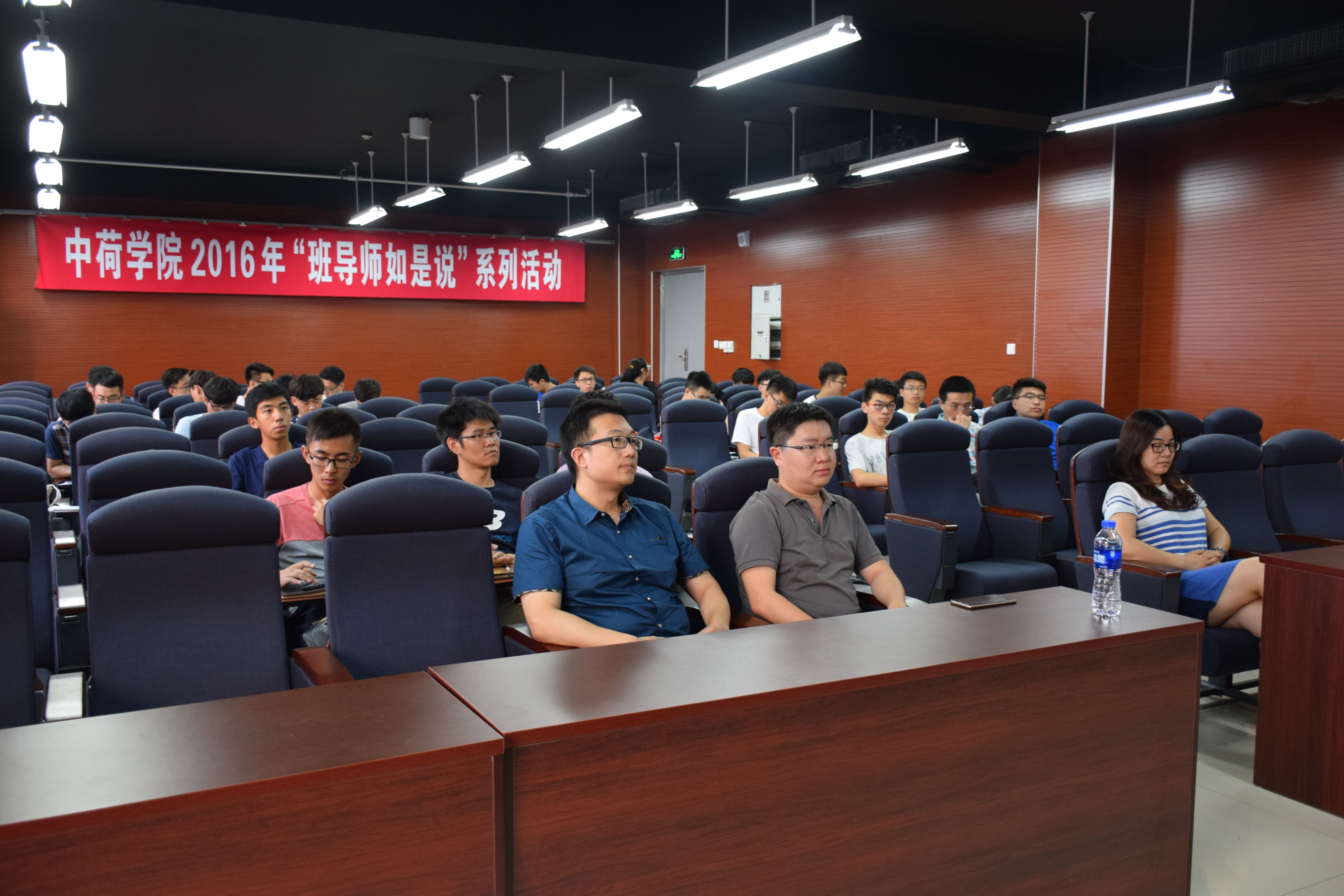 7月5日晚,“分享感悟•共同成长”中荷学院优秀青年教师代表交流分享会于生科楼B619会议室成功举办。本次活动由中荷学院学生工作办工会小组主办。中荷学院教学副院长齐林、科研副院长马贺应邀出席活动,两位“80后”青年教授与近百名本科、硕士学生进行了坦诚、热烈地交流。中荷学院党委副书记兼副院长王帅及学生工作办工会小组全体成员出席活动。活动由学生工作办公室主任时英晋主持。