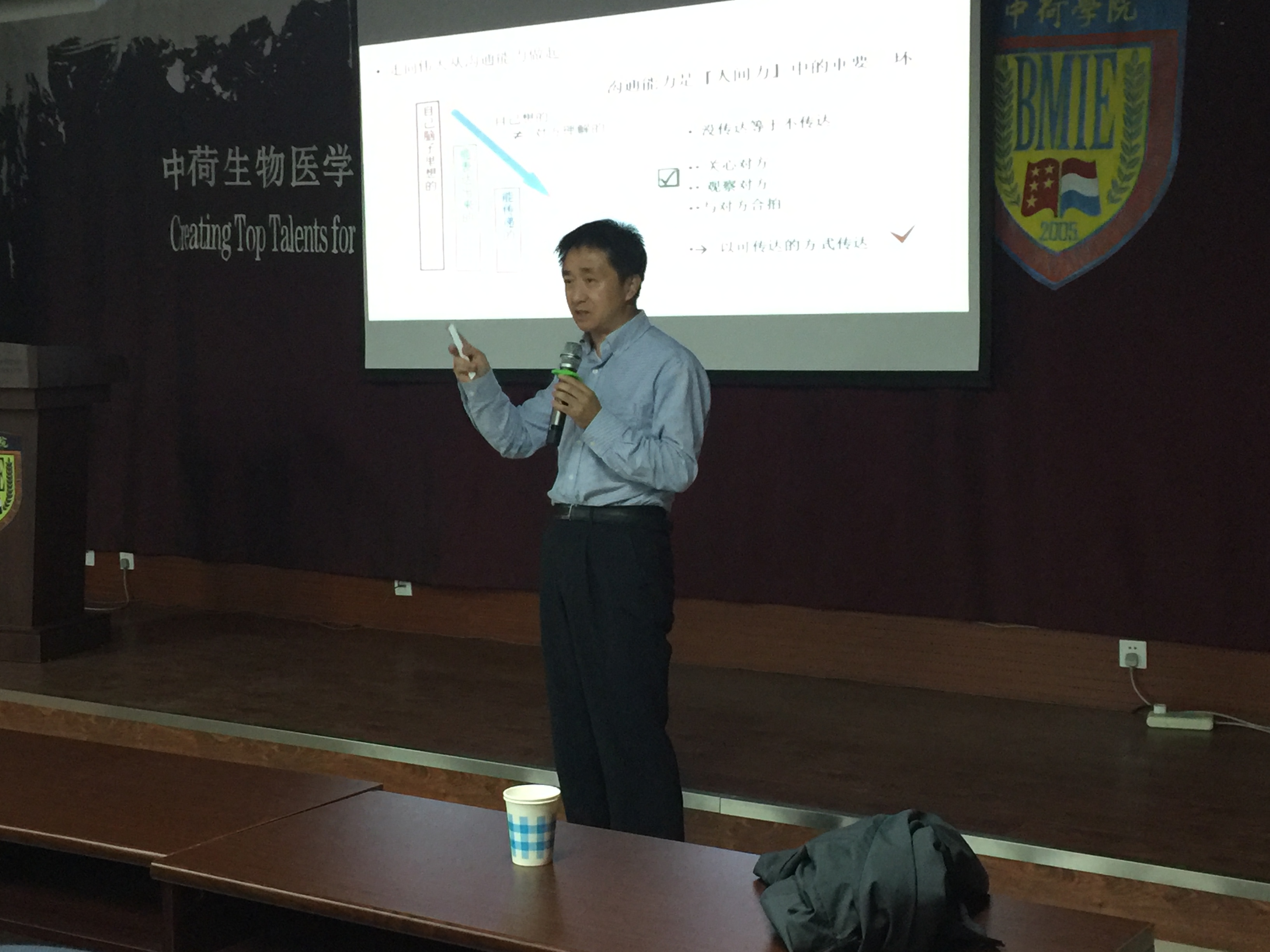 9月22日晚6:30,本期第一次学术交流活动于浑南校区生命学馆B619成功举办。有幸邀请到东软熙康阿尔卑斯的窦元珠总经理,为本期学生作报告本期学术交流以“从平凡走向伟大”为题,窦总以自己为例,总结了如何能让知识进化,如何成就一番事业,如何在有限的生命里创造无限的价值,成为对社会有用的人。