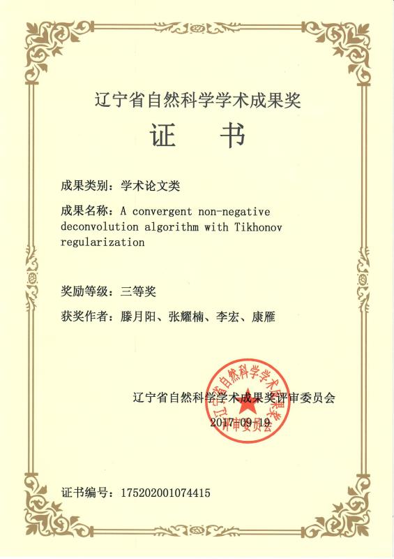 【喜报】影像系教师滕月阳副教授荣获2017年辽宁省自然科学学术成果奖学术论文类三等奖