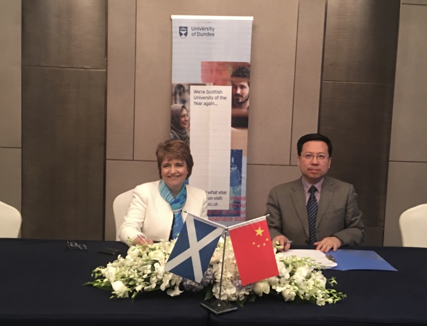 自2012年以来中荷生物医学与信息工程学院与其科学与工程学院开展了3+1+1本、硕连读项目合作,2016年双方又签订了在本科阶段的2+2学分链接协议。项目开展后有近30名学生进入该项目学习,邓迪大学每年派送优秀的师资队伍赴学院指导项目的开展,2017年暑期,邓迪大学25名师生受邀到东北大学参加了由东北大学教务处主办的暑期国际课程建设项目。基于前期良好的合作基础,2017年双方开始积极探索中外合作办学并完成了招生计划、培养方案、师资配备等合作细节的探讨。双方踏实积极的合作同时受到邓迪大学所在的苏格兰政府的高度重视,此次其首席大臣访华期间特向东北大学特发出邀请,完成双方拟深入合作的签约,见证双方强强联合的历史时刻,学院拟在2018年9月申报该中外合作办学项目,第一批计划招生120人,这也是学院在东北大学在“双一流”建设规划下深入国际化办学的又一举措。