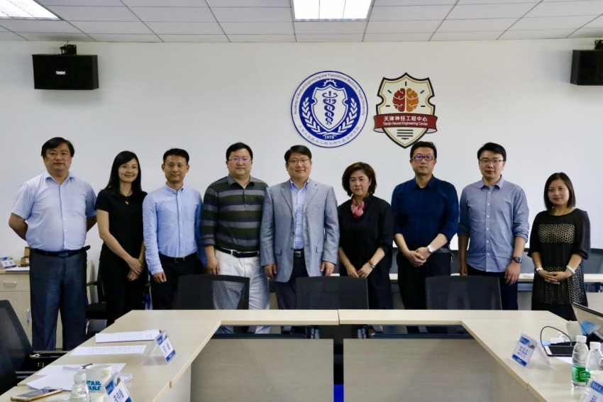 天津大学医科建设办公室主任、医学工程与转化医学研究院院长明东,副主任李伟锋、万亮,医学工程与转化医学研究院副院长庞博以及智能医学工程专业责任教师团队会见来宾并参加座谈。