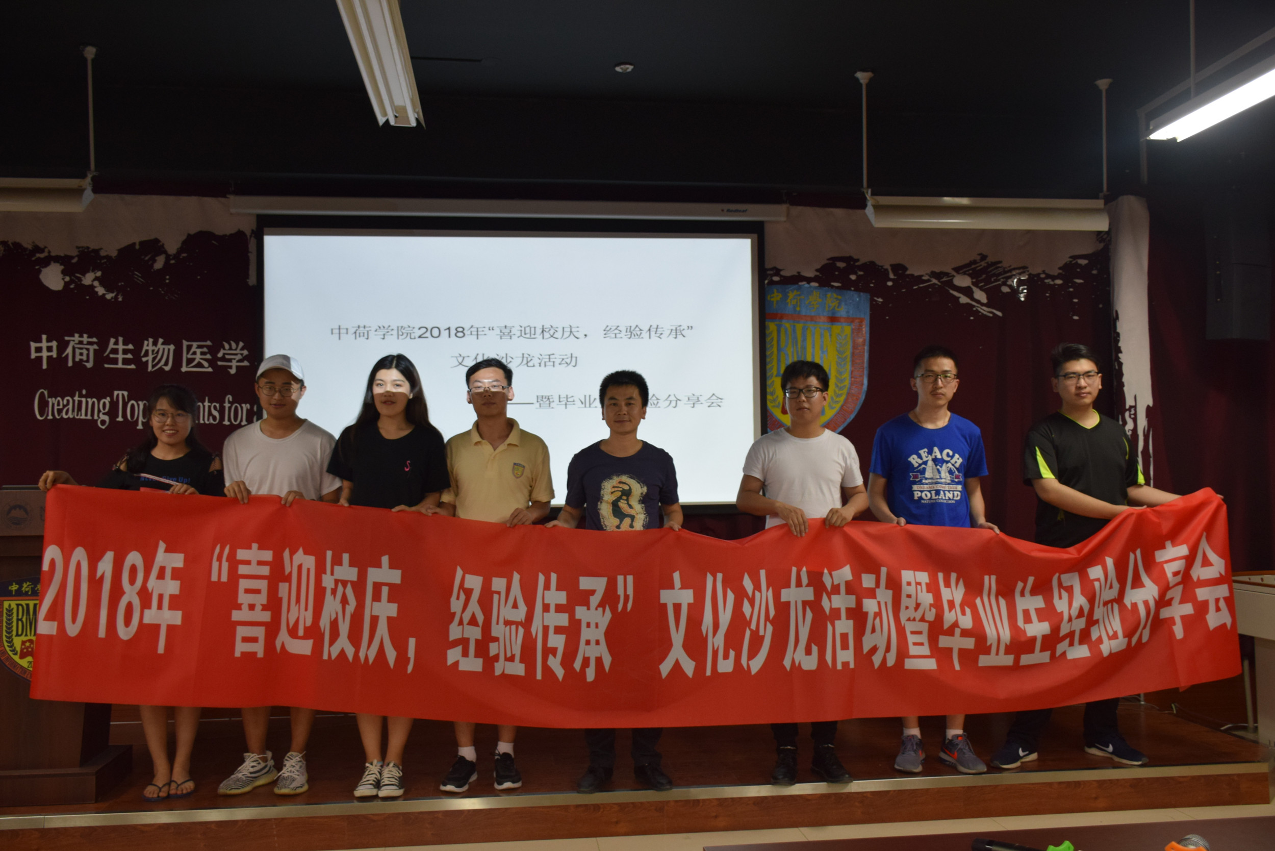 6月6日晚6:30,在生命学馆B619室举办中荷学院“喜迎校庆经验传承”文化沙龙活动暨毕业生经验分享会。2018届本科毕业生共8名代表从考研、出国、工作等三个大方面为学弟学妹们进行经验分享。他们用最朴素的语言,讲述着属于中荷学子的青春奋斗故事。他们说:“考研是段孤寂的旅程,心态的调整,坚持到最后的人才能取得胜利;考研不只是埋头学习,信息的收集和获得会帮助你开启成功之门;考研失败,也并不是没有选择,同样认真的分析与调剂也能收获理想学校;学习、工作样样兼顾,秘诀就是尽早确立出国申请目标,朝着目标去准备、去努力;出国同学要想清楚出国留学的目的,才能把握好方向;竞赛经验磨炼了我的动手实践能力;学生工作让我进入多家企业俱乐部,对岗位有了深刻的认识;到基层工作,不只是为了工资,还有服务国家、奉献社会的信念。”