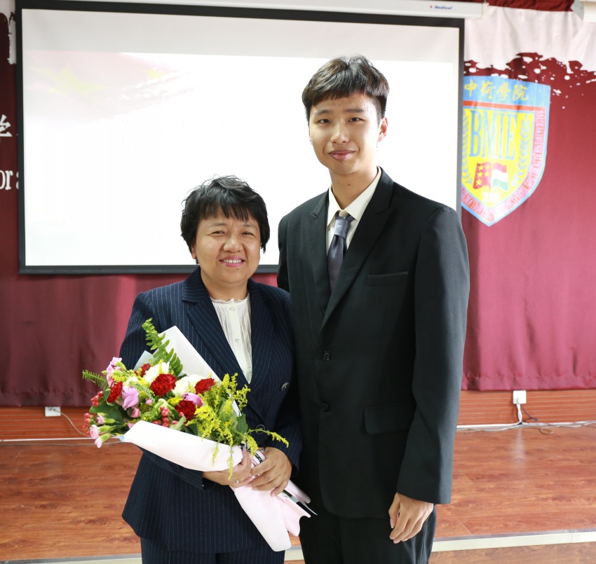 会上还举行了“谢师礼”活动,学生代表分别为卲新慧老师和中荷学院专业教师送上献花和节日祝福。