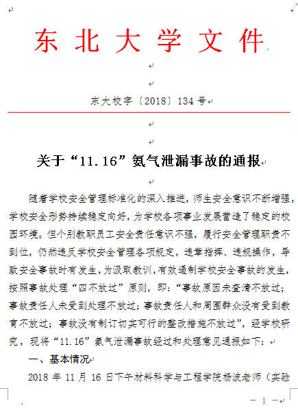 关于“11.16”氨气泄漏事故的通报