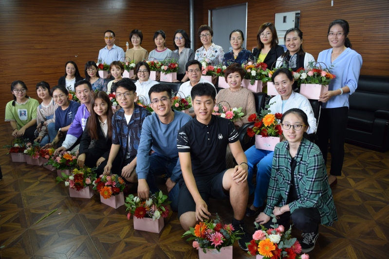 为了庆祝第35个教师节的到来,医工学院于9月10日下午在生命学馆B608室成功举办“庆祝中华人民共和国成立70周年系列活动之‘以花心致匠心’师生互动插花”活动。本次活动由医工学院党委主办、医工学院综合工会小组承办。学院党委书记郝建山、学院党委副书记王帅、学院工会副主席王之琼、学院各班导师代表、各系教师代表和各行政办公室的老师们以及各班学生代表参加了本次活动。