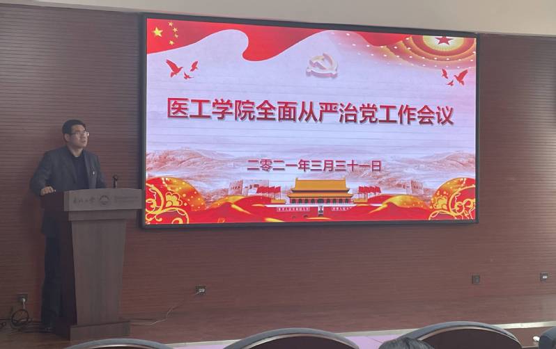 3月31日,医工学院2021年全面从严治党工作会议在生命学馆B619会议室举行。学院党政班子成员、党支部委员、各系主任及副主任、行政全体人员以及教师支部的党外教师代表共30余人参会,会议由医工学院党委副书记王帅主持。