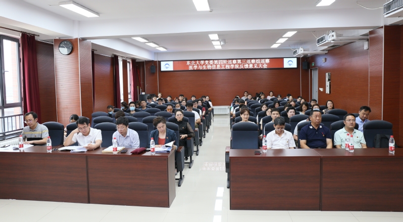 7月22日,东北大学党委第四轮巡察第三巡察组巡察医学与生物信息工程学院反馈意见大会在生命学馆B619室召开。校党委巡察工作领导小组成员、校纪委副书记、党委巡察工作办公室主任王剑,党委第四轮巡察第三巡察组组长、计算机学院党委书记邸馗及第三巡察组成员,党委巡察工作办公室全体人员出席会议。医工学院领导班子成员、党委委员、教职工代表、学生代表等90余人参加会议,会议由医工学院执行院长赵越主持。