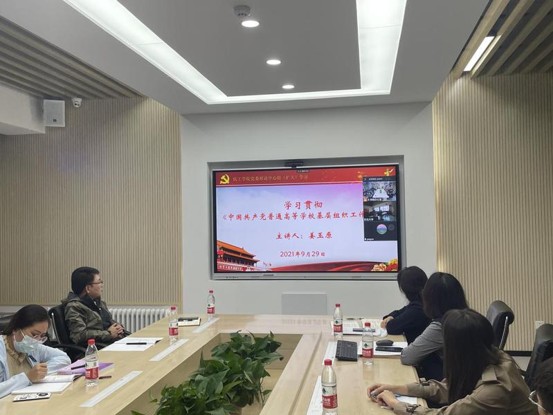 9月29日上午,医学与生物信息工程学院党委在生命学馆B608会议室举行党委理论学习中心组(扩大)学习,东北大学党委组织部正处级组织员、副部长姜玉原受邀作题为“贯彻落实《中国共产党高等学校基层组织工作条例》,构建高质量的高校党建工作体系”专题讲座。会议由学院党委副书记王帅主持,学院党委委员、各支部委员参会。