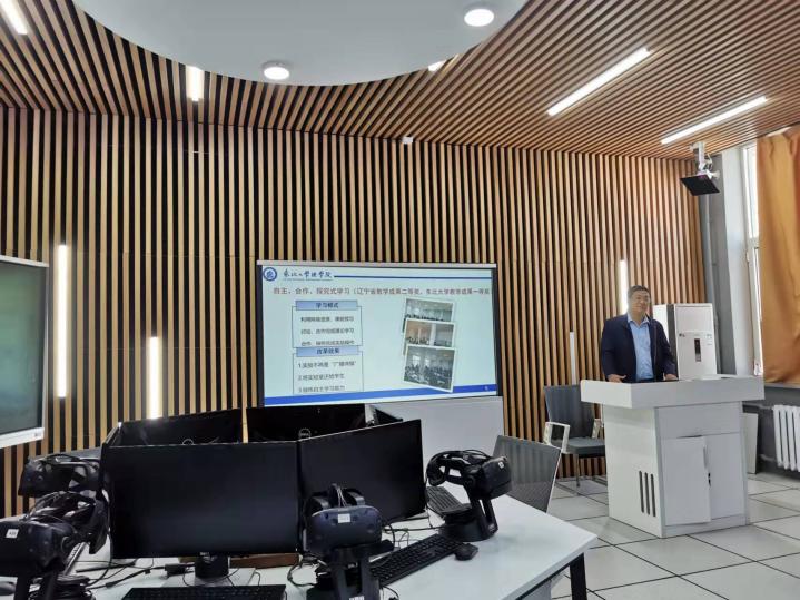 随后,理学院物理系王旗主任就物理实验教学模式、实验室管理系统、线上资源建设等方面进行详细的介绍,并参观物理实验室、VR核物理实验室、VR全息照相实验室。