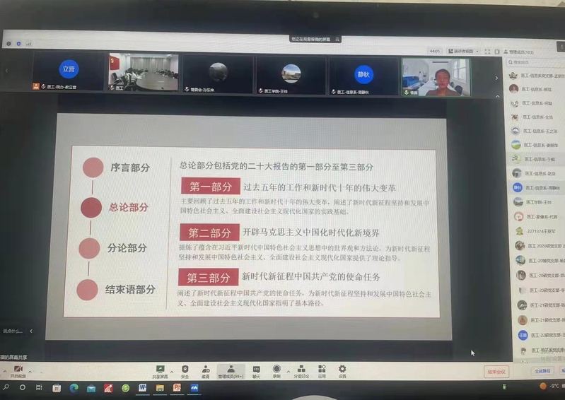 11月30日下午,医工学院与浑南校区管委会联合举办学习贯彻党的二十大精神专题报告会。会议以线上线下相结合的方式召开,医工学院全体教职工、学生党员,浑南校区管委会全体教职工参会。医工学院党委副书记王帅主持会议。