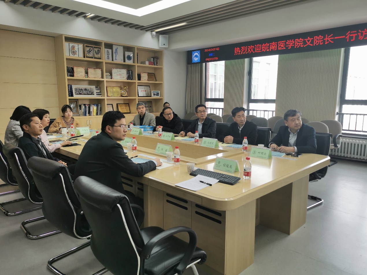 皖南医学院医学影像学院院长赵劲松、医学信息学院副院长叶明全分别介绍了各学院基本情况、办学特色和人才政策。文育锋介绍了皖南医学院的整体发展情况,并希望双方在教师培养、科研合作、人才培养等多方面开展互助交流。