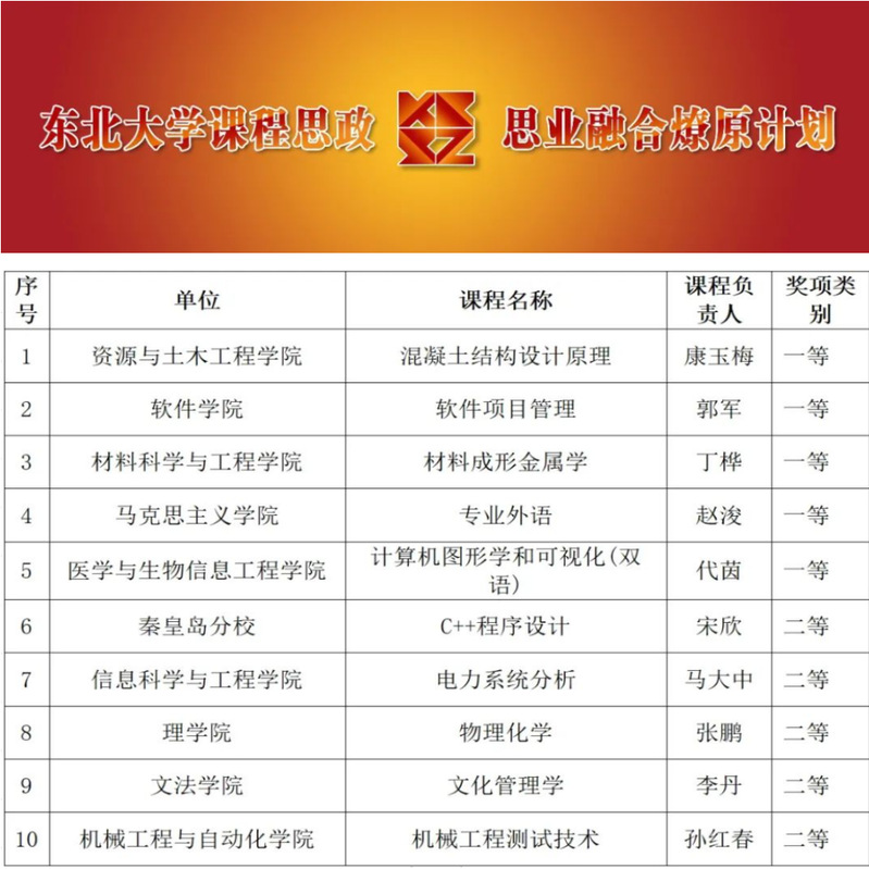 根据《关于举办东北大学首届课程思政说课大赛的通知》要求,学校组织开展了首届课程思政说课大赛评选工作。经个人申报、学院推荐、学校评审及公示,我院由代茵副教授负责的《计算机图形学和可视化(双语)》课程荣获大赛一等奖,特向代茵副教授表示祝贺!