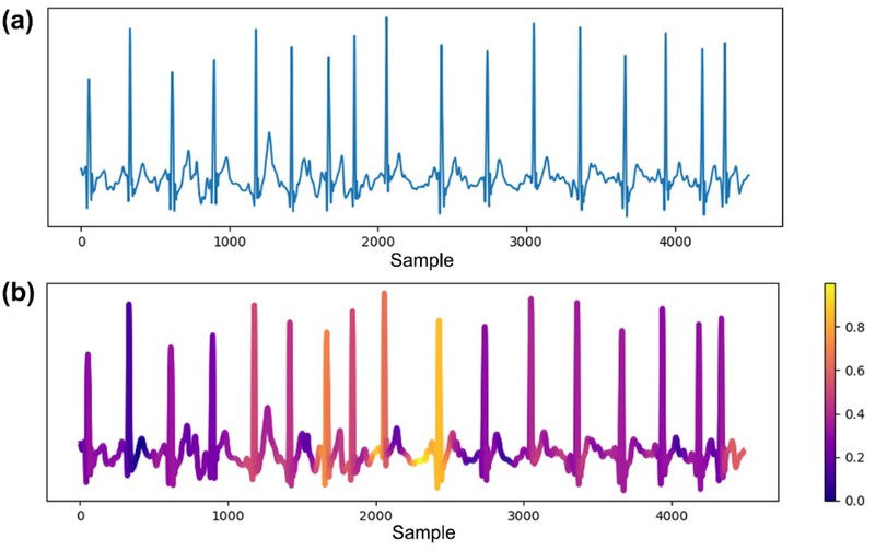 图2.可解释性热图,展示模型的注意力,关注到了房颤的重要特征-P波消失